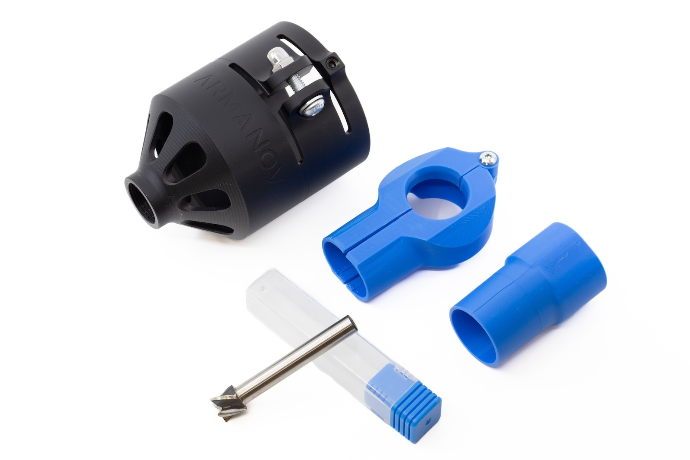 The Router Case Trimmer (RCT) is an innovative solution that allows you to trim your cases using a standard 64.80 mm diameter router. Paired with the included custom 4 vain cutter bit, the Armanov RCT makes trimming fast, precise, and effortless.